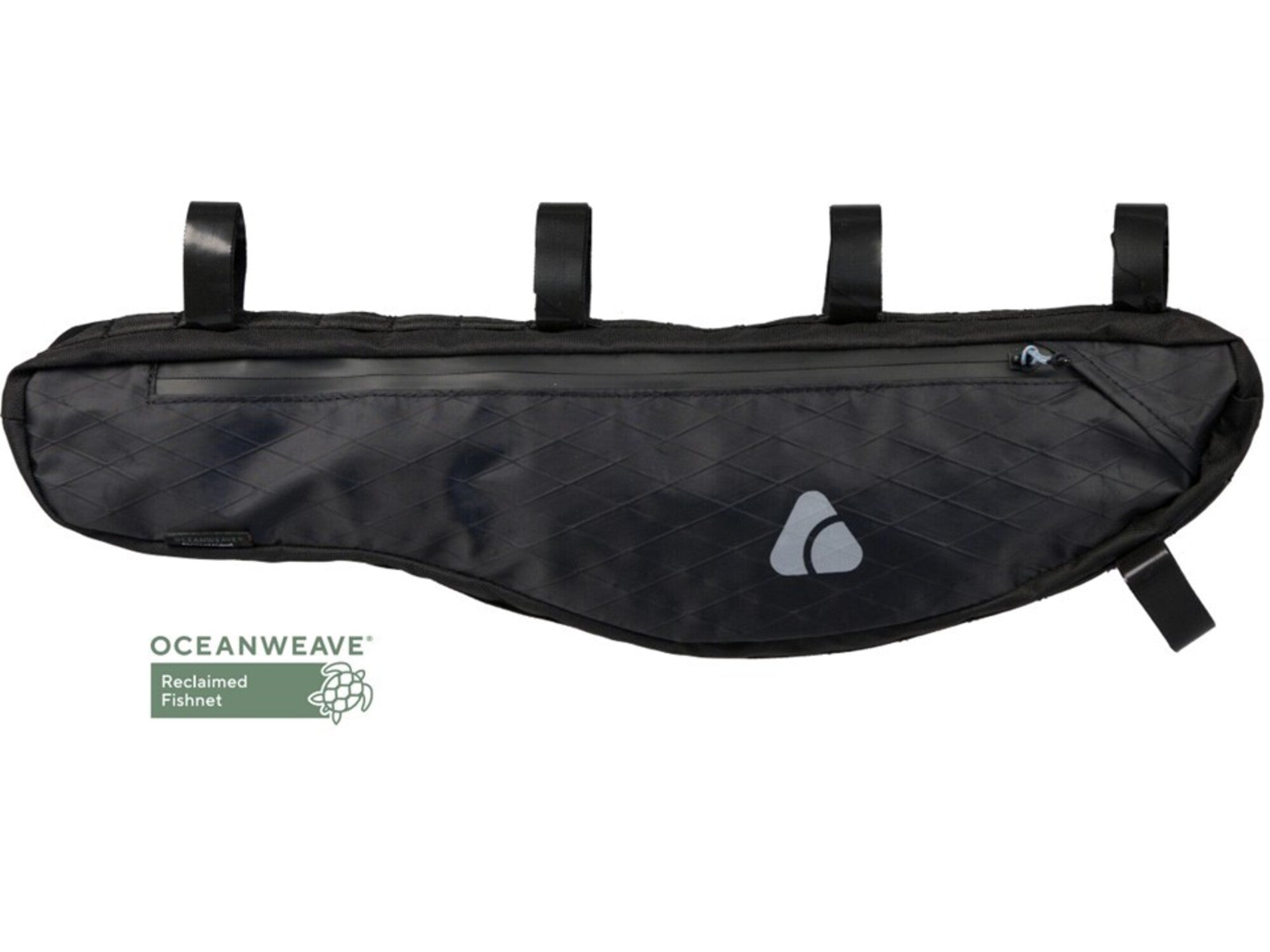 Streamlined storage that’s designed to fit modern bike geometry. The low-profile shape hugs your top tube, so it won’t swing around on bike commutes or weekend rides. Our favourite feature? The extra fleece-lined pocket and key clip tucked inside to keep your phone, keys and coffee cash right where you left them. Plus, Oceanweave Ocean-X multi-layer fabric is made from reclaimed and recycled fishnets to help protect the world’s oceans and marine life.