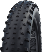 THE FAT BIKE TIRE. Extremely light. The large volume can be ridden with extremely low air pressure. Ideal on soft ground, rough and very loose terrain. Available in widths of 100, 110 or 120 millimetres.