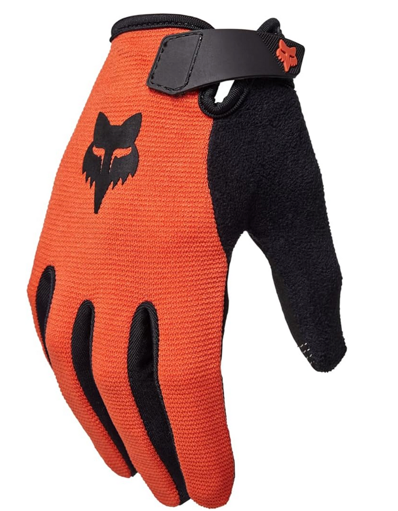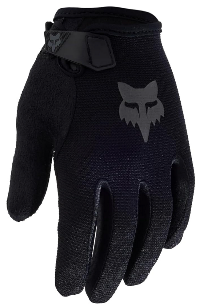Our Best-Selling Mountain Bike Gloves With Touch Screen Compatibility At Fox, we know that riding is a family affair. Spending time with your kids on the trail, helping them learn to shred, gives them confidence on the trails and in life. Our Youth Ranger Gloves have been designed to work specifically for kids, giving them the same level of performance and legendary Fox style in our adult products. - Compression-molded cuff for a secure fit - Absorbent micro-suede thumb - Conductive threads at index finger and thumb for touchscreen compatibility - Screen print artwork - Hook-and-loop wrist closure style MATERIALS - 69% nylon, 17% polyurethane, 10% neoprene, 2% polyester, 2% elastane