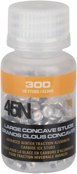 45NRTH utilizes a two-piece construction method to create a reliable and high-performing bicycle tire stud, featuring a concave carbide-aluminum design. The super-sized concave crown creates open space and inside edges of the bowl, resulting in twice the surface area for increased traction and grip.