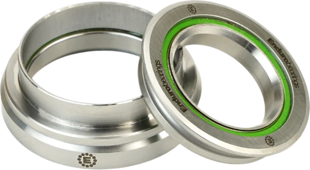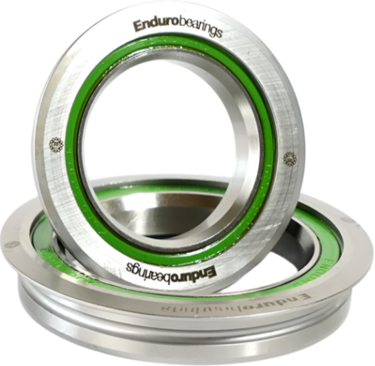The Enduro line of headset bearings begin with chromium steel, Black Oxide finish A/C type and then offer full 440C stainless steel at the top. They are always engineered with the largest balls possible and dual lip seals riding in a micro-groove for ultimate protection against sweat and the elements. They are filled 90% with high pressure water proof grease, so you never have to guess if there is grease inside. Enduro Angular Contact (A/C) bearings, all balls are engaged to spread the force over a larger surface area, pressure water and minimizing wear.