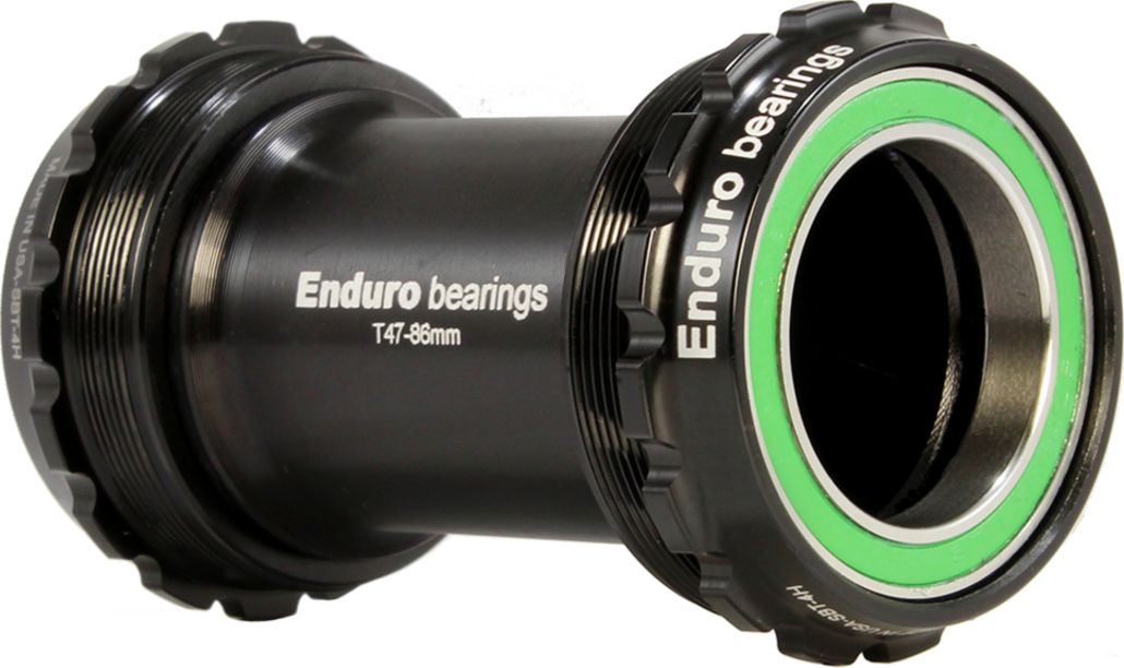 An Enduro Bearings exclusive, our XD-15 Pro BBs feature XD-15 15 Angular Contact cartridge bearings pressed into precision machined aluminum T47 cups that simply thread directly into the BB shell. Utilizing the same XD-15 steel as our XD-15 Corsa bearing, Enduro XD-15 Pro bearings offer a 15 angular contact sealed bearing in a standard-sized cartridge. XD-15 Pro bearings feature deep-groove raceways allowing for maximum sized grade 5 Silicon Nitride ceramic balls for for increased contact area and improved performance and longevity. Enduro XD-15 bottom brackets are manufactured to the highest standards at the Enduro Bearings production facility in California, USA. Enduoro XD-15 bearings combine corrosion-proof, cryogenically treated nitrogen steel races with Silicon Nitride grade 5 ceramic balls in a proprietary process that results in the ultimate high performance bearing setup.