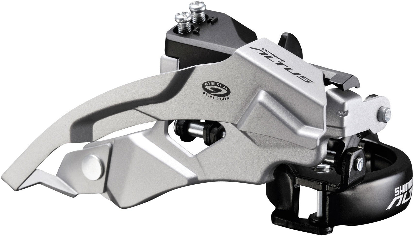 The Altus FD-M370 front derailleur offers the Dual-Pull technology, so the the shifting cable can be pulled from the top or from the bottom. Chain guides are made of chromed steel.