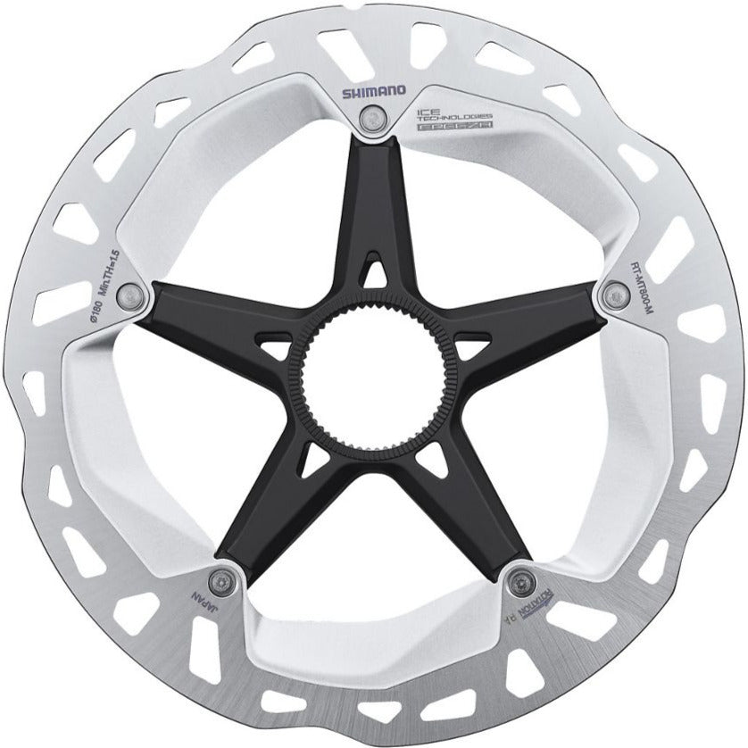 SHIMANO's DEORE XT RT-MT800 compact and lightweight disc brake rotors feature rapid heat dissipation thanks to ICE TECHNOLOGIES FREEZA heat management system. Installing and removing the rotors is quick and easy with SHIMANO's CENTER LOCK design.