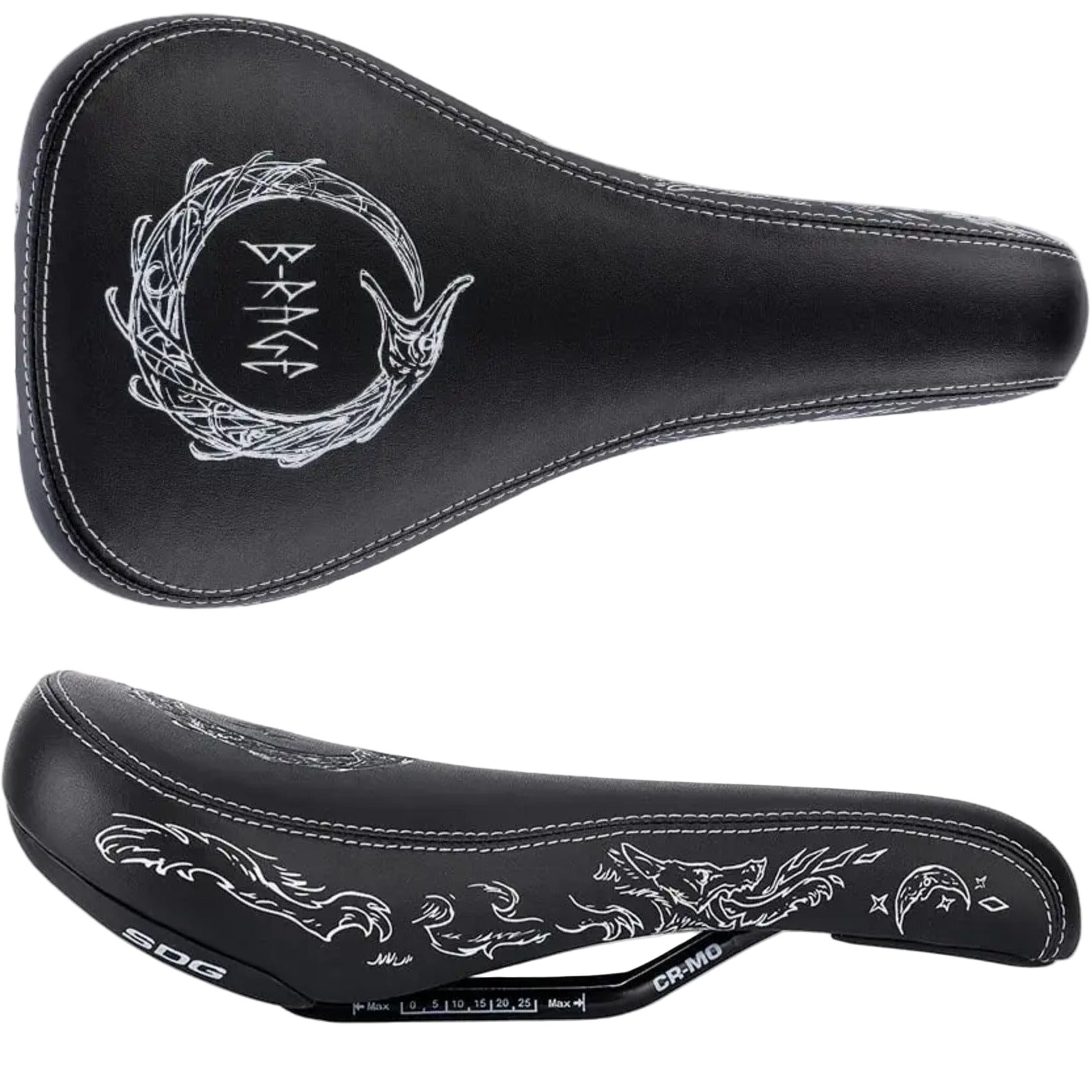 “I love the thicker leather look and I also really wanted to add the stitches that are inspired by old BMX seats. I’m so stoked we got to do that! The material works well in the wet too and doesn’t suck up water. I was also really stoked to work with my good friend Kai Robin, who is a tattoo artist from Norway that I love to use for most of my projects. It’s always cool for me to be able to bring in the old Norwegian culture and mythology. Cheers SDG for believing in my vision. It's been years in the making so really stoked to get it out there!”