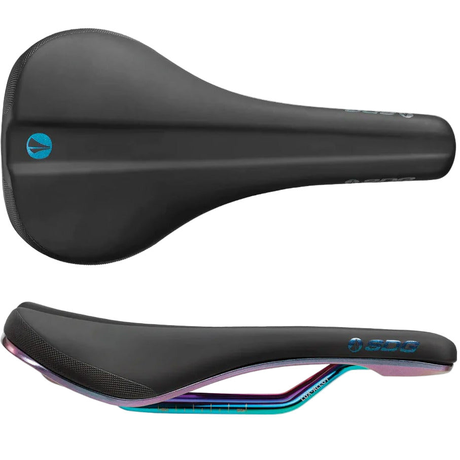 New for 2020. The Bel-Air borrows the comfort proven profile of the original Bel-Air, but wrapped in an updated package that’ll complement any performance driven build. While utilizing the slight rear rise of the Bel-Air, it provides extra support, comfort and power from the seated position for any epic long adventures. The V3 saddle has been slimmed down – now shorter in overall length to match current bike geometries, along with the reduced hips to extend a sleeker appearance, without jeopardizing any comfort characteristics. The FUEL model features an oil slick finish on the base, iridescent dripped and coated Lux-Alloy rails and matching screen printed graphics, allowing you to further customize your build and stand out from the crowd.