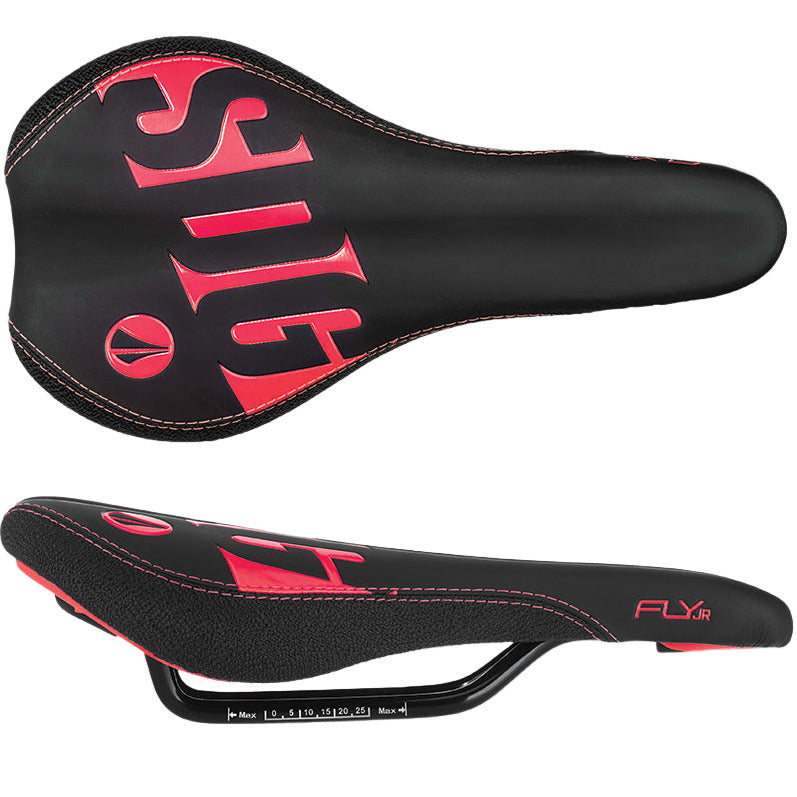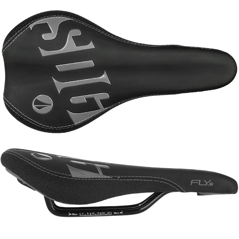 Time to toss that big bulky seat away. The Fly Jr saddle is the industry’s first branded performance MTB saddle, developed specifically for youth riders in mind. The Fly Jr has been adopted from top OEM’s, such as Cube, Mondraker, Norco, YT and many other leading brands for good reason. The saddle is anatomically designed for smaller sit bones and utilizes our popular slight rear rise platform to ensure they’re in a comfortable riding position. The comfort is further elevated thanks to a peri-canal relief groove, plush PU foam and a nose platform to ensure they can stay focused on their riding and enjoy the experience.