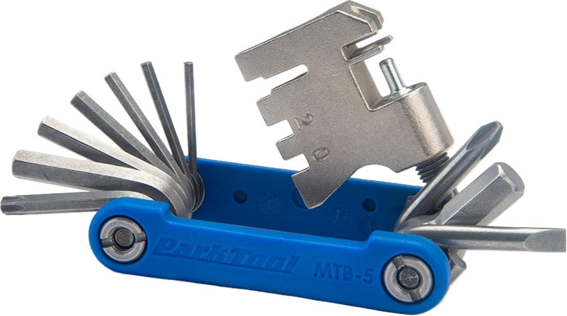 The MTB-5 packs 16 functions into one slim, tough folding multi-tool, making it the ideal companion for any trailside adjustment or emergency fix. Features a full set of hex wrenches and screwdrivers, a T25 Torx®-compatible driver, and five specialty tools to aid in common on-the-ride repairs.