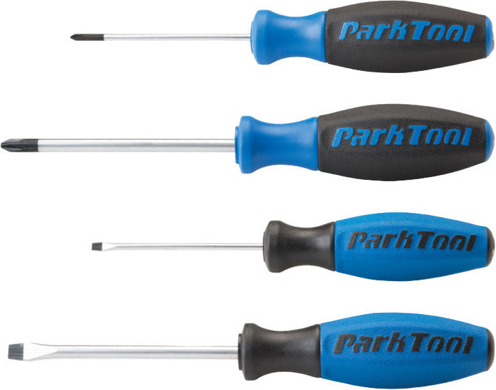 The Park Tool SD-SET features all four of our shop grade screwdrivers in one handy set. Designed for comfort and durability, featuring dual density grips and heat-treated tips and shafts.