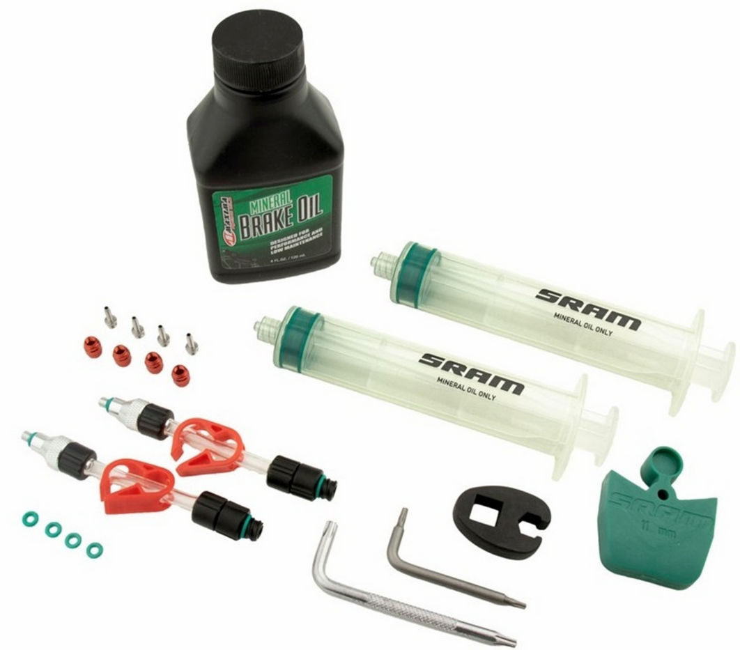 Mineral Oil: Standard bleed kit for keeping your SRAM DB-8 mineral oil disc brakes in peak performance. Includes 2 syringes, M4 fittings, pinch clamps, bleed block, torx tool, crowfoot. Maxima Mineral Oil also included