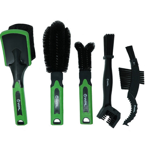 This brush kit includes five different brushes designed specifically for various parts of your bike, packaged in a mesh storage bag to prevent moisture buildup when stored.