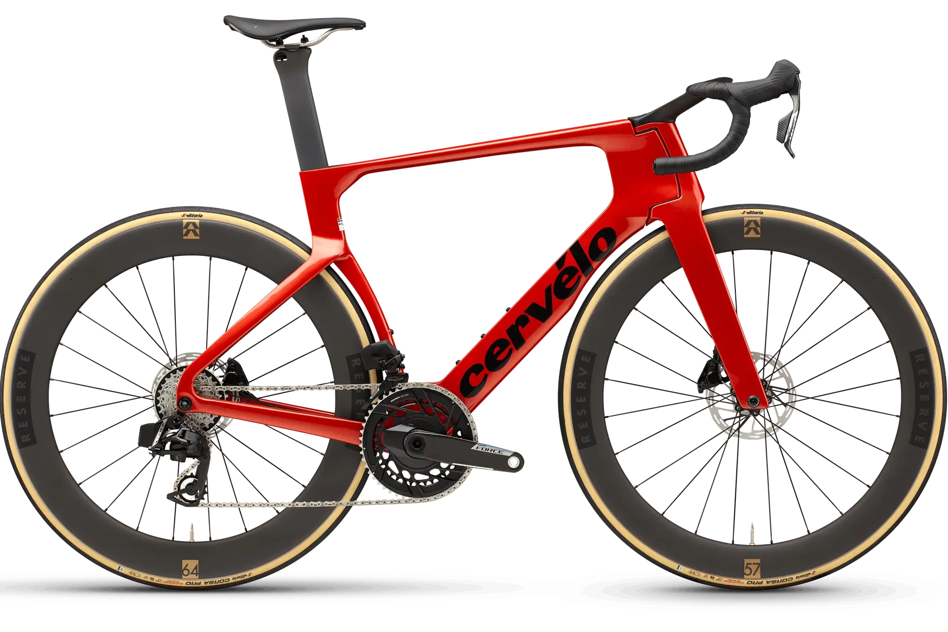 Cervélo and Reserve co-developed the new Reserve 57|64 Turbulent Aero wheels specifically for use in the S5 frame, completing the aerodynamic system.