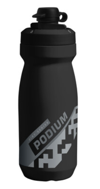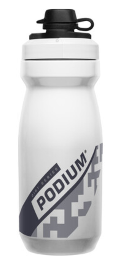 The Podium Dirt Series is the premium bike bottle for mountain bikers who prioritize performance and functionality above all else. The Mud Cap keeps dirt and dust out of your bottle while the secure cage fit means you'll be able to swig and stow your bottle with confidence. Like all CamelBak Podium bottles, it features our high flow, self-sealing cap, easy-to-clean interface and easy-to-squeeze design. And, of course, it's 100% free of BPA, BPS and BPF. - Easy-to-Clean Interface: All parts can separate for thorough cleaning - Optimized Cage Fit: Engineered to securely fit in a variety of bottle cages - Easy Squeeze: Get more fluid with less effort - Mud Cap: Drink water. Don't eat dirt. - High Flow, Self-Sealing Cap: Maximizes flow rate while eliminating splatters and spills - 100% free of BPA, BPS and BPF: Ride clean, drink clean - Positive Lock out: For leak-proof transport - Trutaste Polypropylene with Hydroguard: Taste your water and nothing else, time after time.
