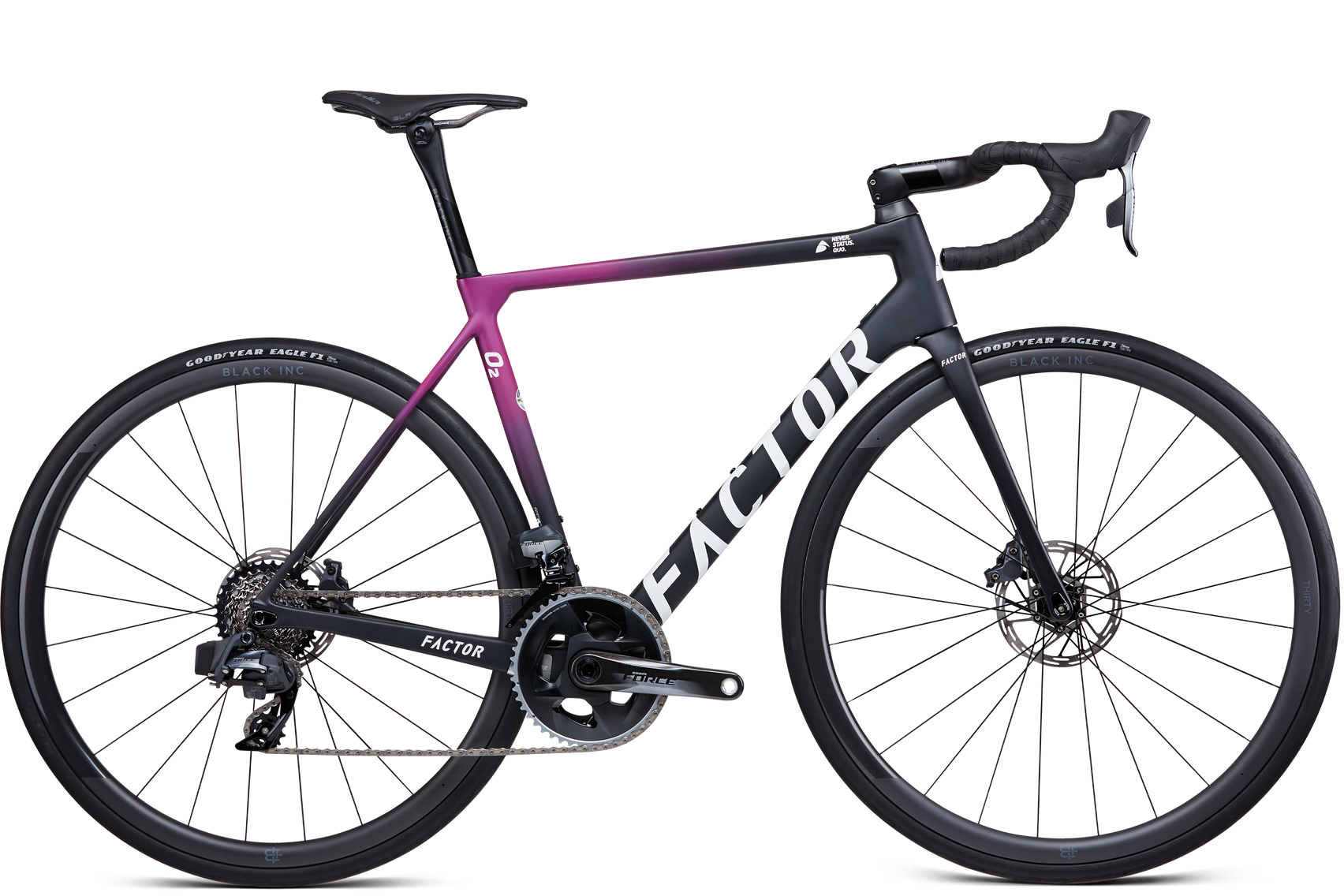 When we first premiered the Factor O2, it was ridden to mountain top stage victories at the Tour de France and second place at Paris-Roubaix. As good as that version of the O2 proved to be, this revamped O2 is even better, thanks largely to improved manufacturing techniques that allow us to make the frame lighter, stronger, and more durable. Our ability to control every aspect of the manufacturing process allows us to optimize every aspect of the frame design. Advancements like the Svelte Fork increase control, stiffness, and comfort, while the tapered steerer tube enhances steering precision and introduces aerodynamic gains.
