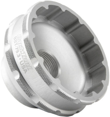 A precision CNC-machined aluminum tool for the installation and removal of select threaded bottom brackets with 12-notch tool fittings, including SRAM® BSA DUB®, Race Face® Cinch®, Rotor® BSA30, and others. Manufactured in-house by Park Tool, anodized for easy identification and featuring a ratchet/torque wrench-compatible 3/8" drive.