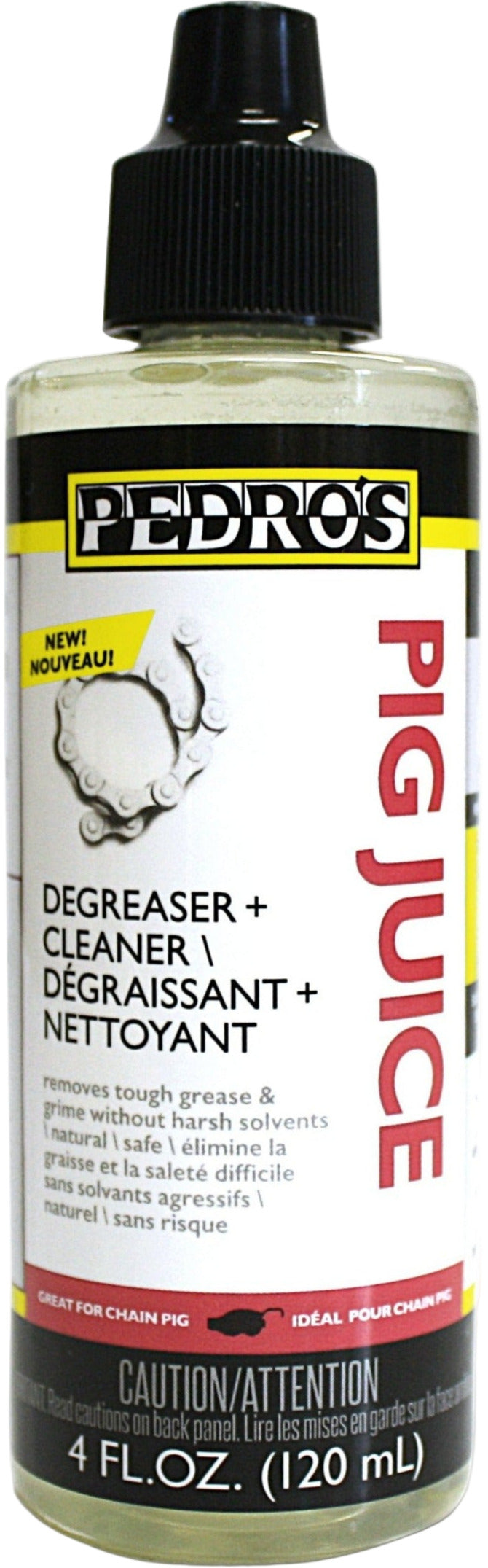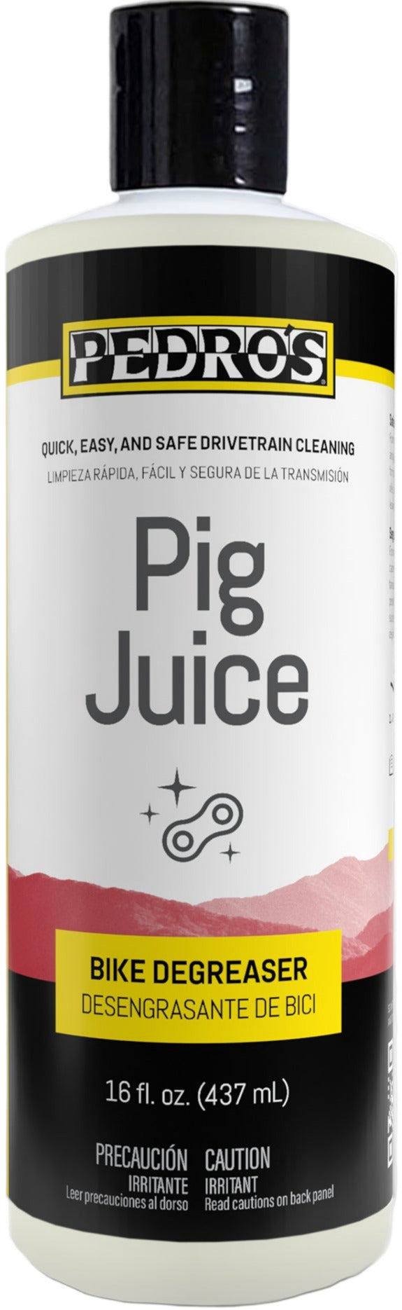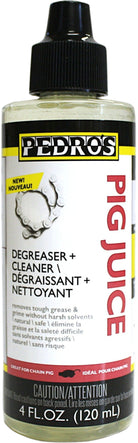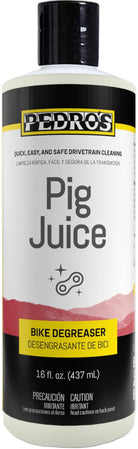 Developed specifically for our grime-devouring Chain Pig chain cleaner, Pig Juice is an impressively effective and economical degreaser/cleaner that makes bicycle drivetrain cleaning quick, easy, and safe for anyone from novice to professional. Pig Juice features an advanced pre-activated formula that quickly penetrates & loosens, removing oils, soils, and grime with less scrubbing & rinsing, and leaves spotless residue-free parts. Free of harsh chemicals, gentle enough to use on any material, fully biodegradable, fragrance-free, dye-free, solvent-free, plant-derived, and zero-VOC.