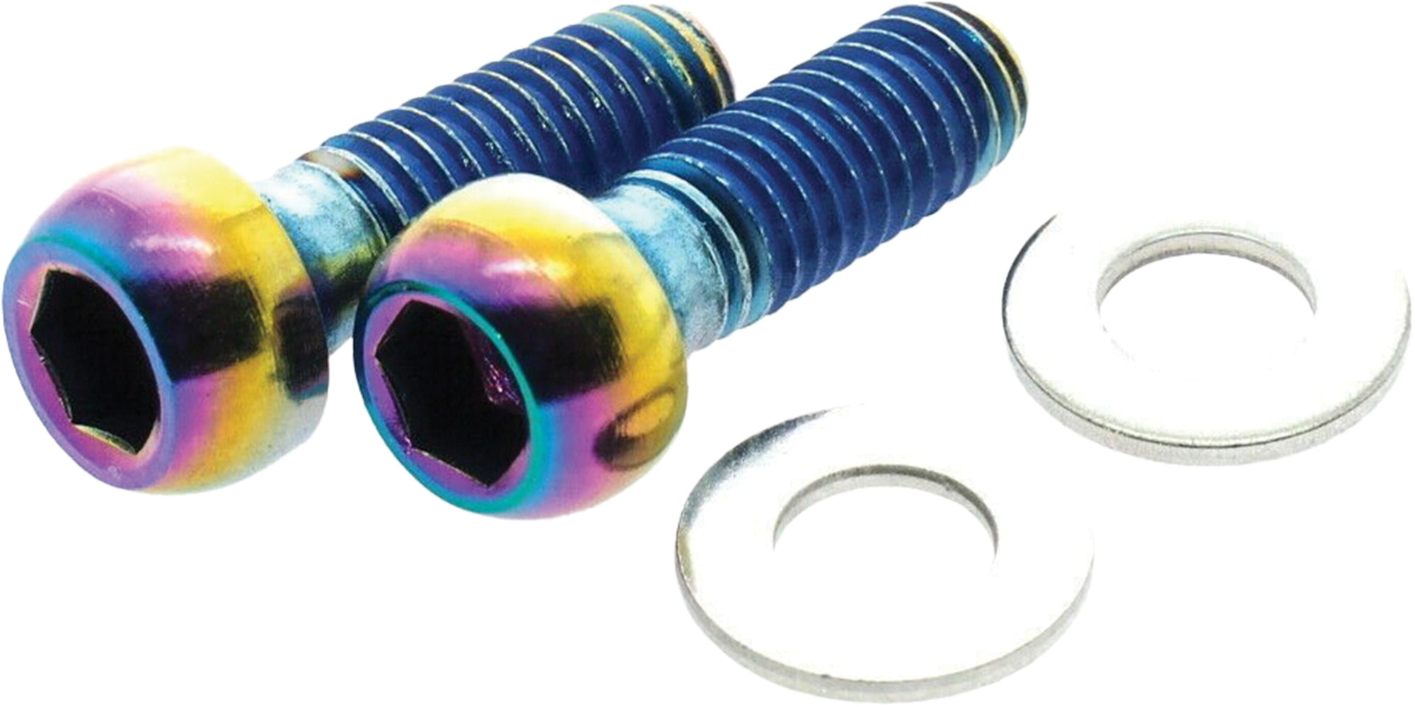 - Two M6 x 17mm stainless steel screws in Rainbow finish