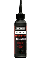 Stan’s Biobased ForkBoost, a suspension game-changer, lubricates and cleans bicycle suspension seals - banishing stiction, removing dirt, and extending seal life. Just apply it to the dust seals, pump the suspension, and wipe away the grime. It’s harmless to rubber and plastic, ensuring no damage, swelling, or cracking. Use Stan’s Biobased ForkBoost internally during fork rebuilds to soak foam seals and cut grease to the perfect thickness. Keep your ride smooth, responsive, and trail-ready with Stan’s Biobased ForkBoost.